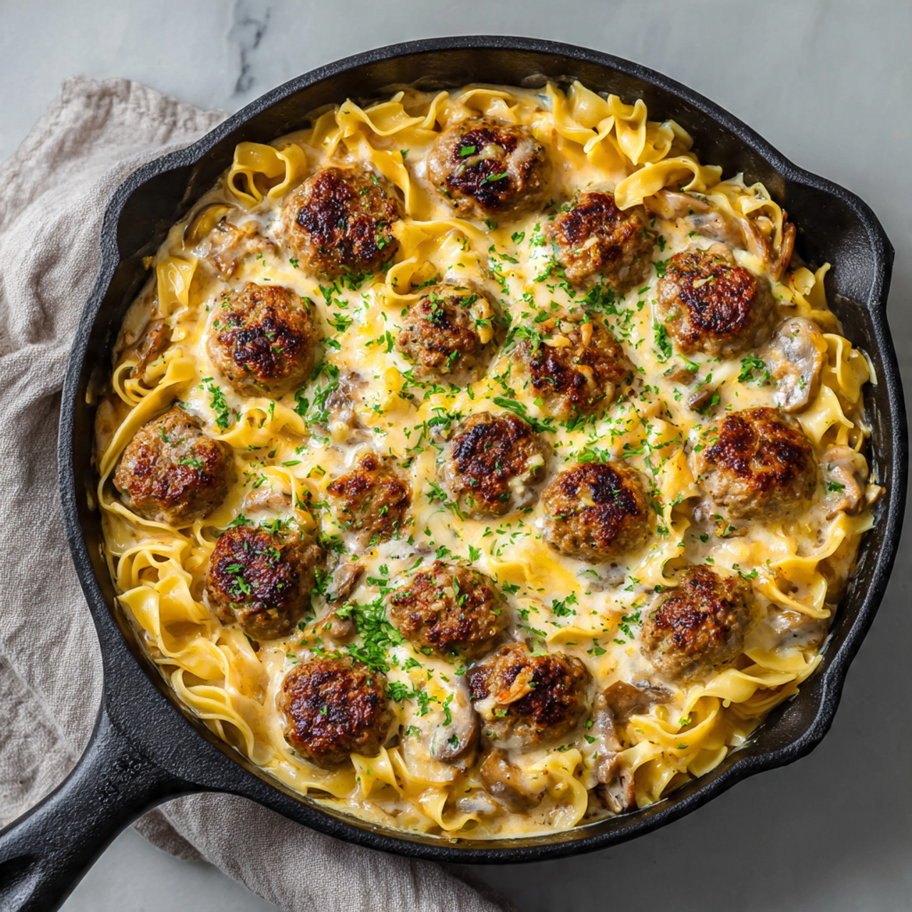 ⭐ Cremige Fleischbällchen-Pfanne mit Eiernudeln