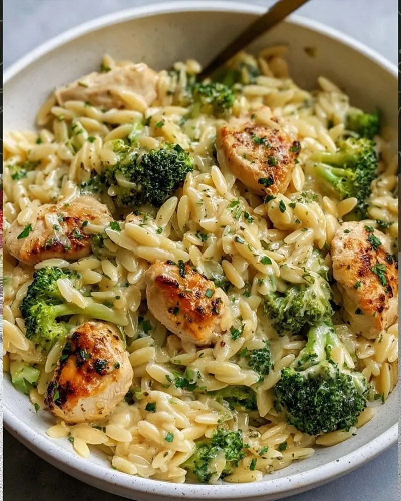 Cremige Hähnchen-Orzo-Pfanne mit Brokkoli – Essen in 30 Minuten