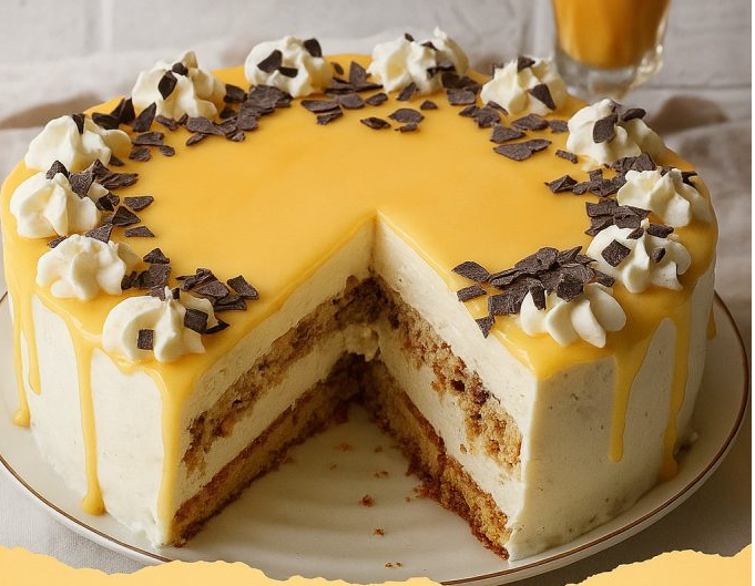 Für die Füllung Gelatine einweichen. Eierlikör oder Baileys, Frischkäse und Zucker verrühren. Gelatine ausdrücken, auflösen und mit 4 Esslöffeln der Creme verrühren. Die Mischung unter die Frischkäsemasse ziehen. Sahne steif schlagen und unterheben. Die Hälfte der Likörcreme auf den Boden geben. Den zweiten Boden darauf legen. Restliche Creme darauf streichen und die Torte mindestens 2 Stunden kalt stellen.