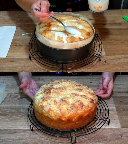 - Den Kuchen im vorgeheizten Ofen ca. 30-35 Minuten backen, bis er goldbraun und fest ist (ein Zahnstocher sollte sauber herauskommen).